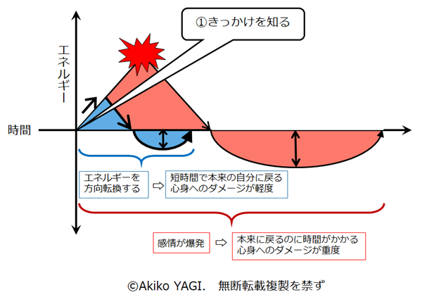 前回もご紹介した図で言うと、そもそも、どういう時に上り坂を登り始める傾向があるか(①)を把握します。スイッチが押された際には「イラッ」「ムカッ」「カチン」だけではなく、「がっかり」「ショック」と感じることもあることを意識しながら、以下の項目を見てみてください。