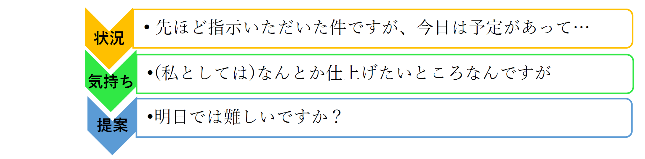 余韻余情を醸し出して、相手から答えを引き出す、という意味では、語尾を濁すのは、非常に高度なテクニックです。実際、上記㋒で述べた「わたしメッセージ」の例文でも、「今日は予定があって…」という言い回しで、あえて語尾をはっきりさせないという例を挙げていました。ただ、これは自分の発言の途中で、そのあとにセリフが続き、最後は言い切る、という表現になっています。