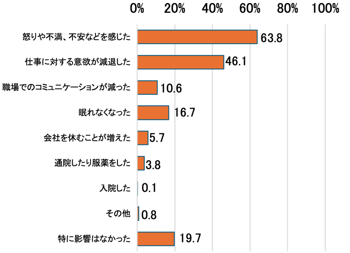 顧客等からの著しい迷惑行為を受けたことによる心身への影響(経験頻度別)