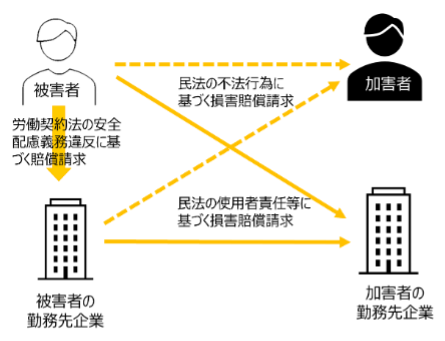 なお、雇用する労働者が取引先等企業の労働者にカスハラをした場合、カスハラをした労働者が不法行為として損害賠償責任を追及されるほか、カスハラをした労働者を雇用する事業主も、使用者責任(民法715条)を追及される可能性があることにも留意が必要です。