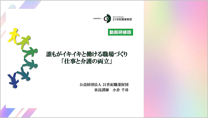 誰にでも起こりうる介護への備えとして、不安を軽減し、仕事との両立への意識を高めることを⽬指した動画です。