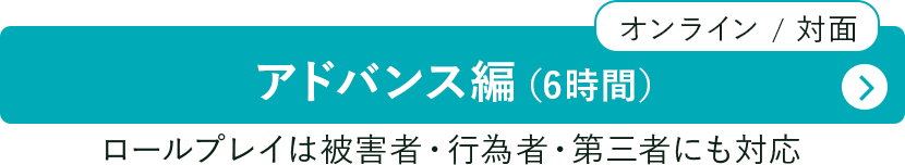 相談担当者のスキルアップに向けて、一日みっちり実技を行う研修になります。被害者・行為者・第三者への対応をロールプレイで体験します。講師の講評や参加者同士の意見交換からも気づきが得られ、研鑽を積む絶好のチャンスです。