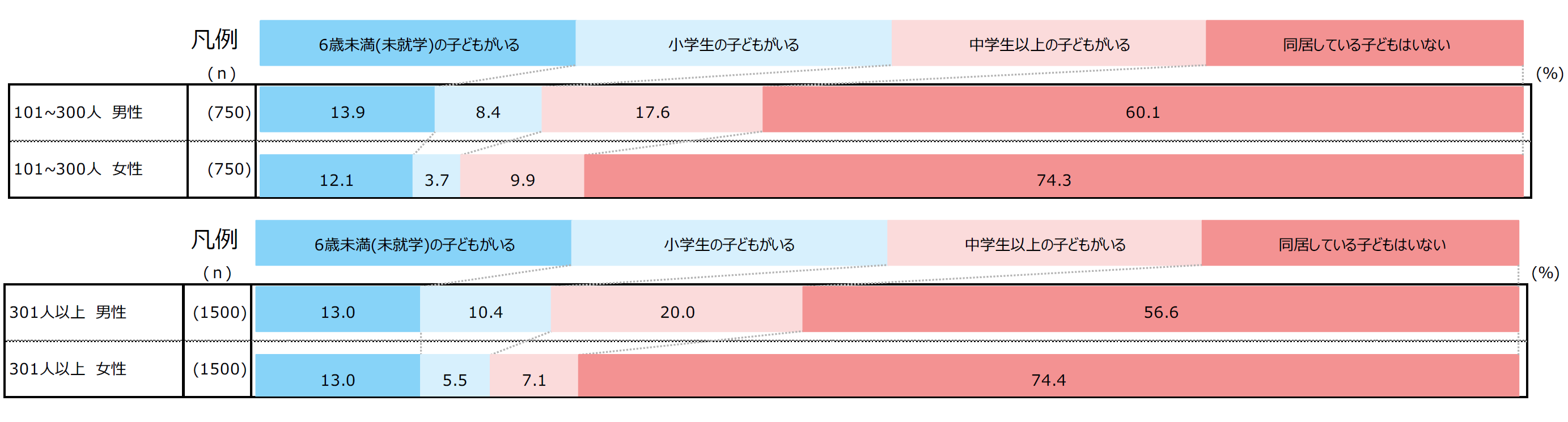 <男女別 企業規模別 同居している子どもの有無・年齢>