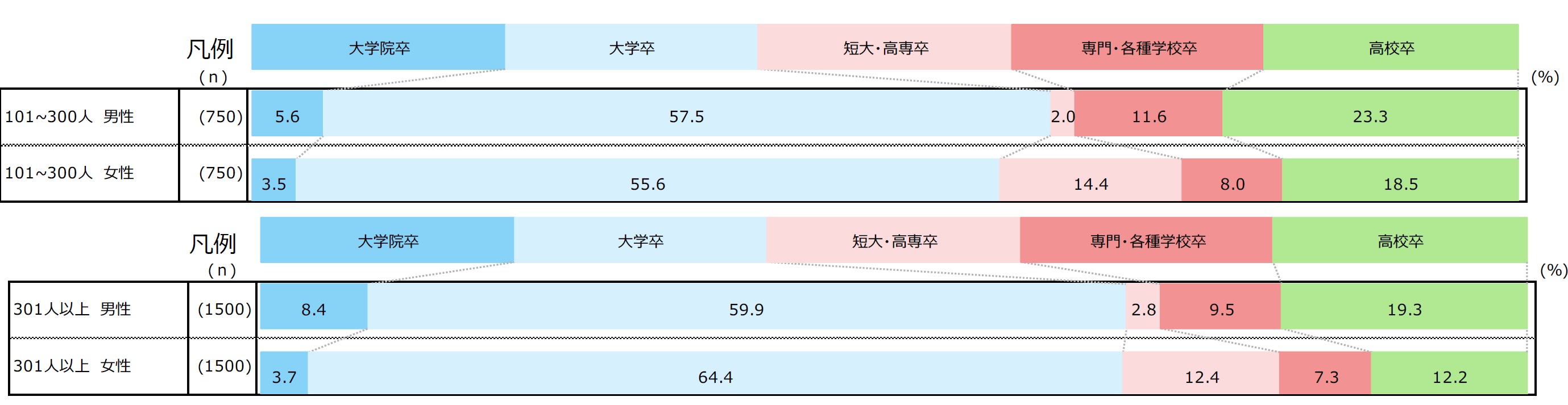 *本調査(2022年)の企業規模区切りは、女性活躍推進法の区切りに従い、101~300人、301人以上としている。