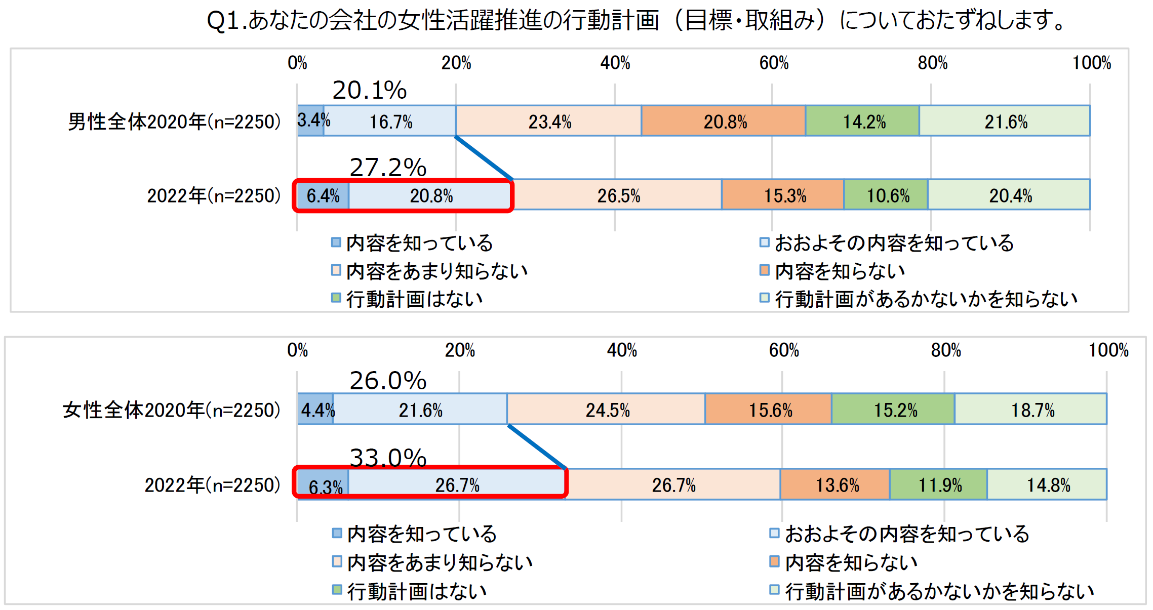 1.女性活躍推進の行動計画の認知度は向上したが、まだ低いレベルにある