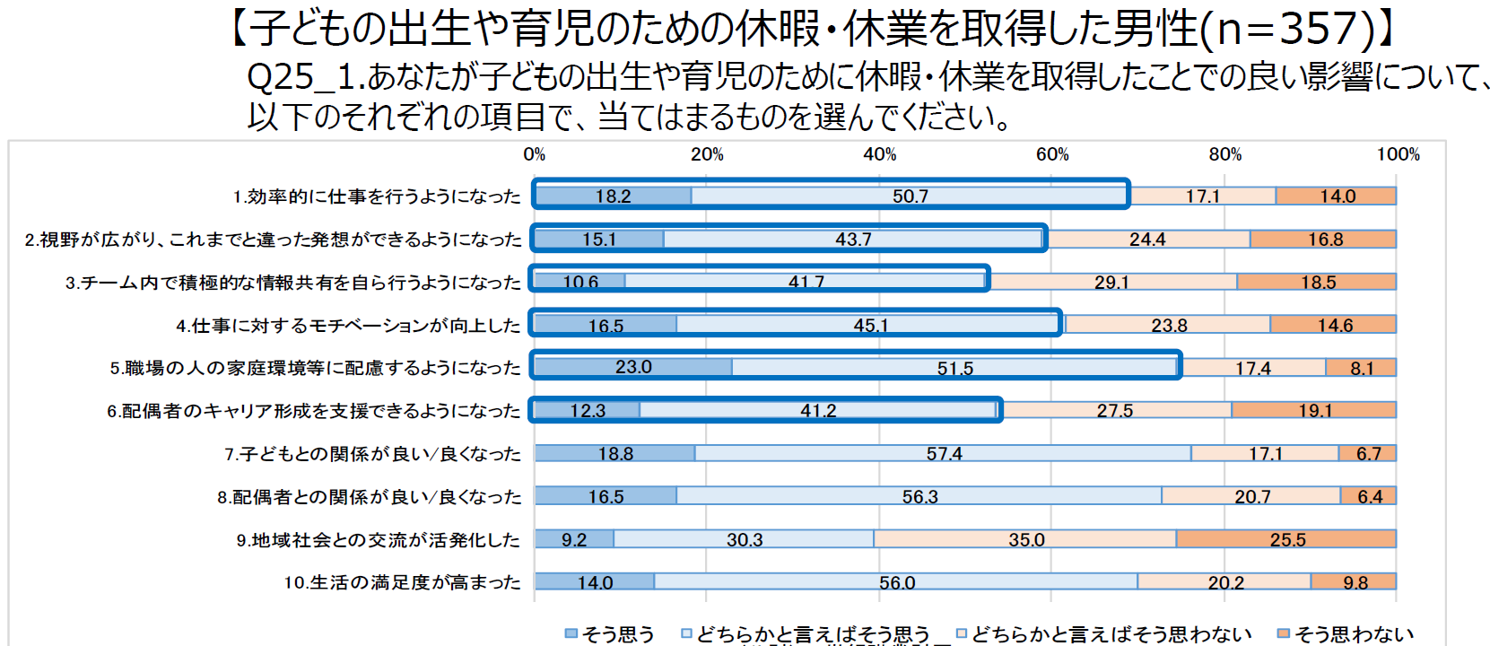 男性が育児のために休暇・休業を取得することは、職場にもよい影響がある