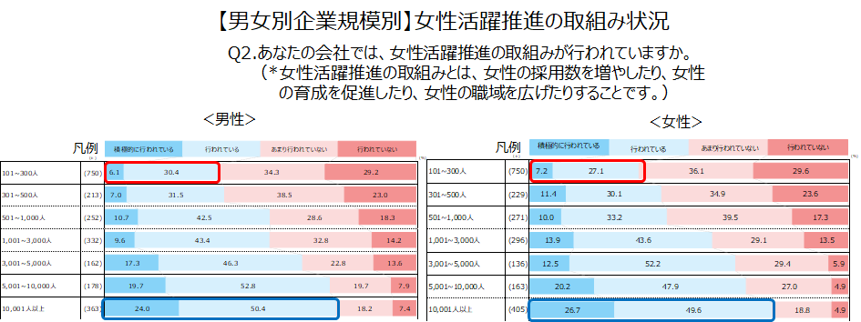 2.企業規模が小さいほど女性活躍推進の取組みが行われていない