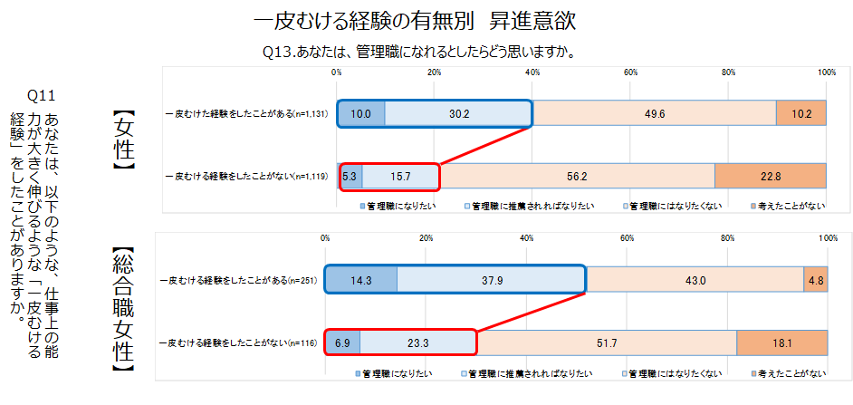 「一皮むける経験」をしたことがある場合、昇進意欲が高い
