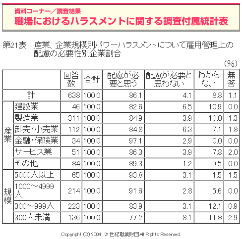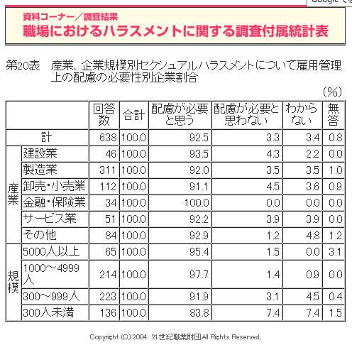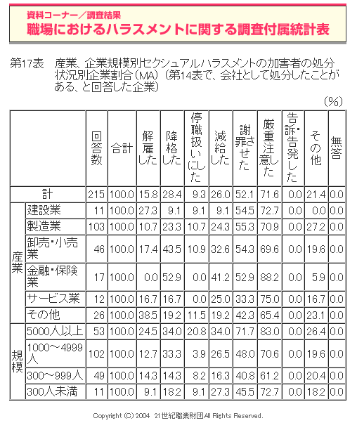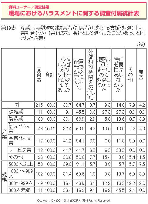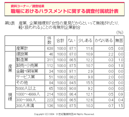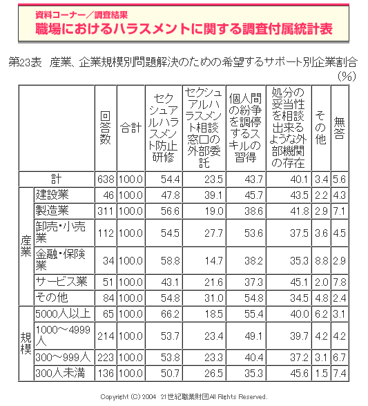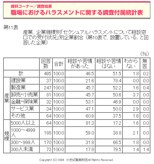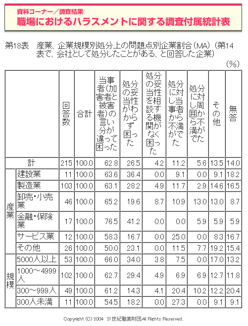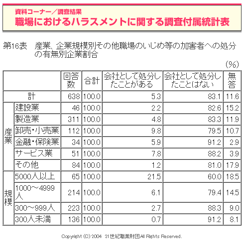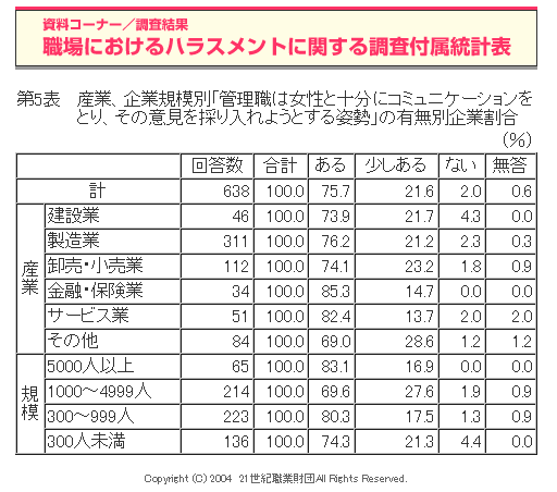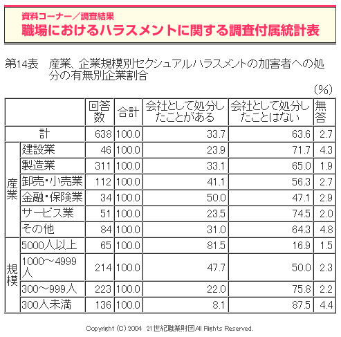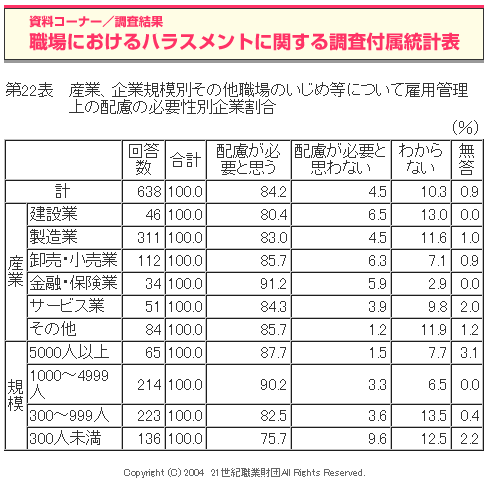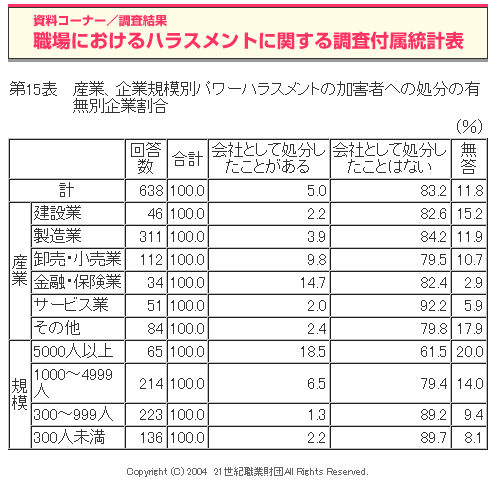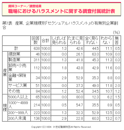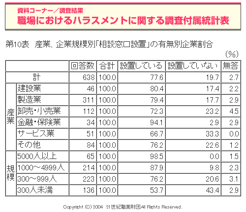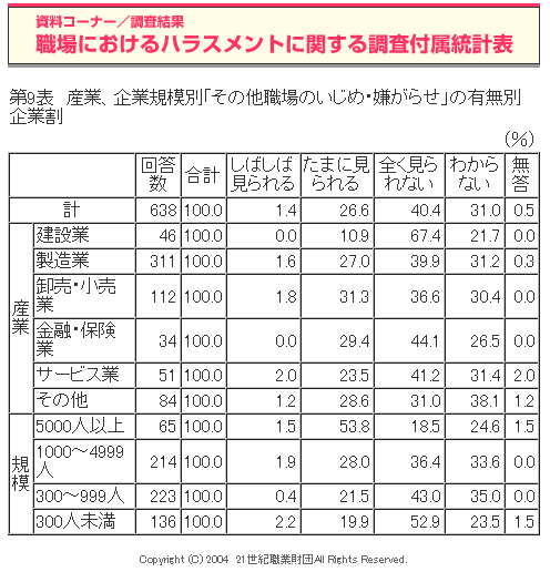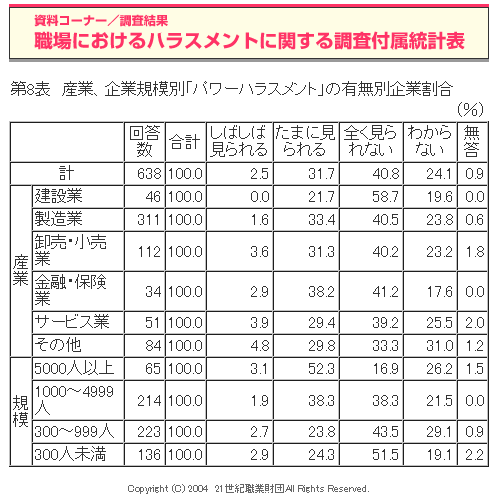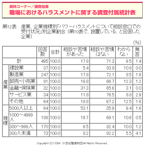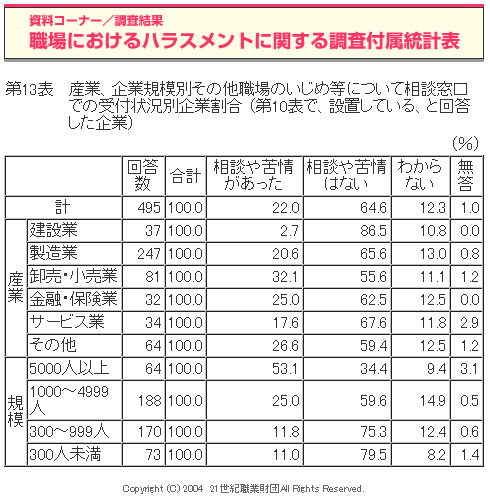 職場におけるハラスメントに関する調査(2004年度)