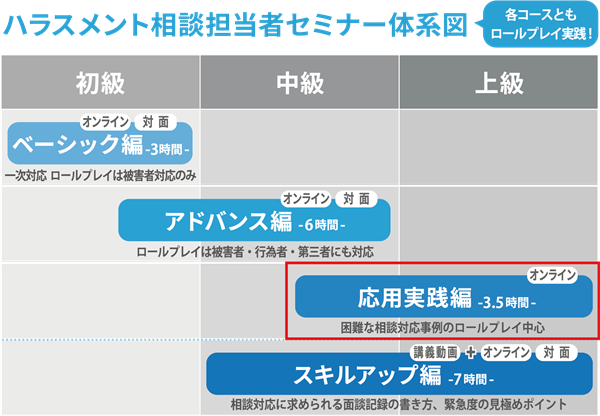 ハラスメント相談に適切に対応するためには相談担当者に、レベル維持・向上のための定期的な研修受講が望まれます。